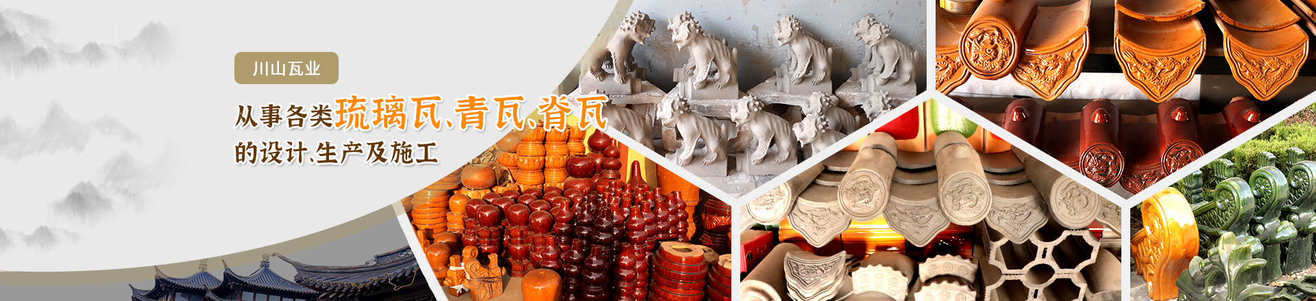 山東淄博川山瓦業位于山東省淄博市淄川區蒲松齡的故鄉,公司從事各類琉璃瓦、青磚青瓦、園林古建瓦、鍍金瓦、磚雕石雕的設計、生產及施工多年,各種產品規格型號齊全,配套造型優美,古香古色,產品具有色澤均勻,永不褪色,抗凍性強,耐酸堿等特點,主要產品有:板瓦、筒瓦、勾頭、滴水、當勾、折腰、套獸、垂獸、跑獸、正吻、翹角、寶頂、龍鳳脊、花脊、筒脊、等系列產品。